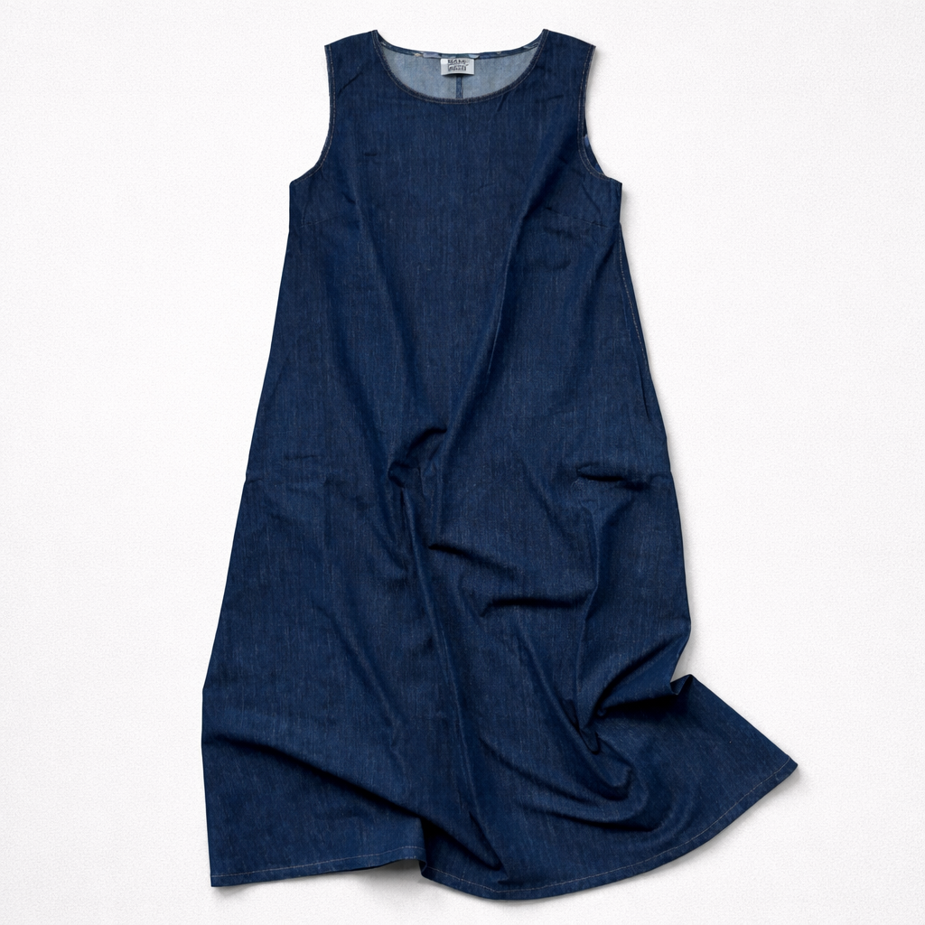Długa, jeansowa sukienka z kieszeniami w kolorze NAVY blue.